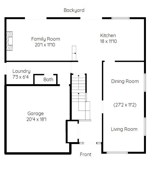 Living Room/Dining Room 27′ 2″ X 11′ 2″