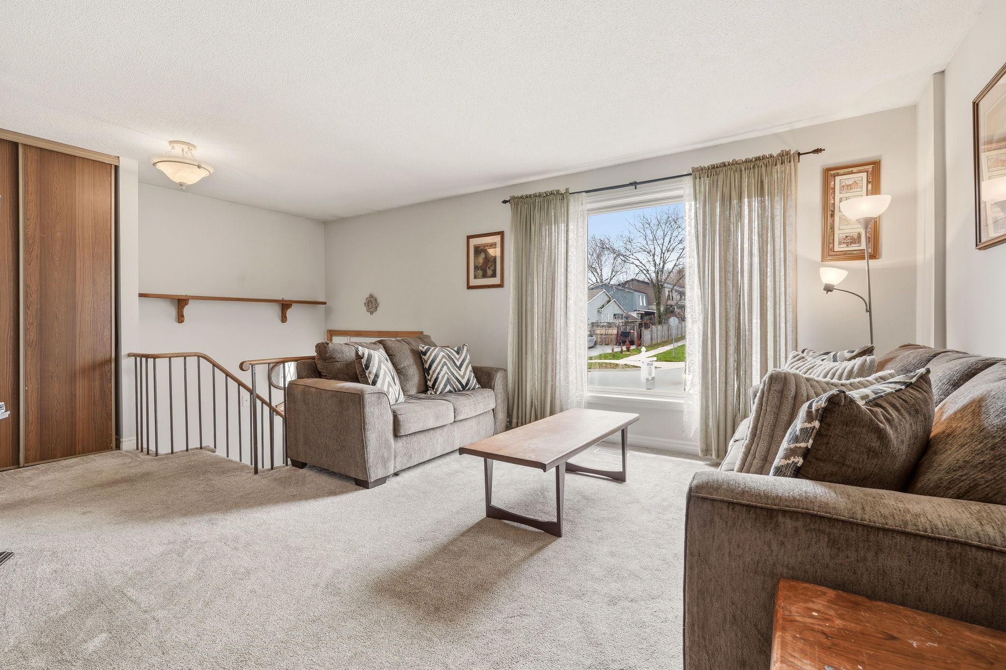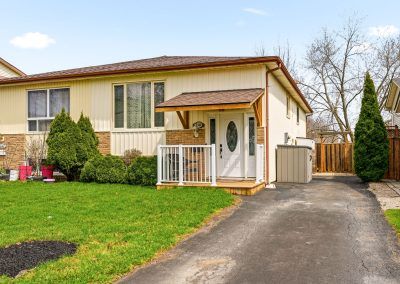 Welcome to your stunning 3+1 bedroom semi-detached home located in family friendly Brant Hills! As you enter through the updated front door w/elegant glass sidelights, you’ll be greeted by a welcoming foyer featuring a convenient front hall closet. The expansive living room boasts a large window offering unobstructed western views, creating a bright and inviting atmosphere. This space seamlessly flows into the generously sized dining room, highlighted by a beautiful chandelier and stylish laminate flooring. The eat-in kitchen is a chef’s delight, equipped with a suite of 4 appliances, fresh white cabinetry, double sink, & spacious prep counter. You’ll also find 3 generously proportioned bedrooms. The primary suite features a large window & oversized floor-to-ceiling dbl closet, the 2nd bed also includes a window & single closet. The 3rd bed offers a cozy ambiance with its own window and single closet. The main floor washroom featuring a wide vanity with a single sink, tub/shower combination, ceramic flooring, & additional storage space. Descending to the lower lvl, you’ll discover a bedroom with eye-level windows, a massive recreation room w/brand new broadloom, & bar area w/storage cabinets & laminate flooring. This level also includes a well-appointed 3pc bath w/stand-up shower, large vanity, & abundant storage cabinets. Additionally, the lower level features a laundry room & a spacious storage area that could easily serve as another bedroom or office space. Step outside through the sliding glass doors to your private backyard oasis, featuring a deck gazebo and a fully fenced expansive grass area, perfect for outdoor play and relaxation. Additional highlights of this remarkable home include a large driveway providing ample parking, a charming front porch with a covered awning, & recent updates that encompass the roof, furnace, air conditioning, and hot water tank. Experience the perfect blend of comfort, space, and modern amenities in this wonderful family home!